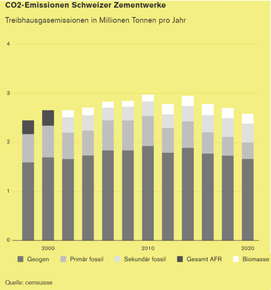 Over the past 20 years, CO₂ emissions at Swiss cement plants have been from Swiss cement plants have remained at a consistently high level of just over 2.5 million tonnes of CO₂ per year. million tonnes of CO₂ annually.