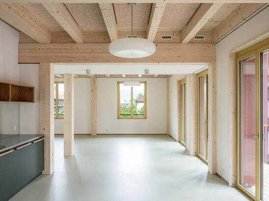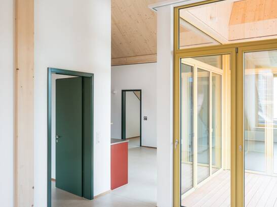 The project comprises 2 apartment buildings, 9 terraced single-family houses, 1 health center and a library with a multi-purpose room. The pergola, pitched roofs and wooden facades blend in perfectly with the rural surroundings. All four new buildings are constructed entirely in wood from the floor slab upwards. The rental offer was very popular. All residential units are rented out.