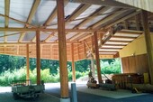 With this design, the 16 x 21 meter shelter does not require any other bracing elements such as struts or arches. The exciting construction with Douglas fir from the company's own forests was awarded the Timber Prize 2017.