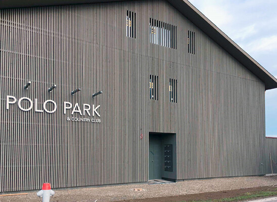 Except for the floor slabs, all buildings of the Polo Park were constructed of wood. Stables and service buildings were constructed as timber frame buildings with wooden formwork as facade cladding. The challenge The imposing aspect of the Polo Park buildings is their mass. The floor plan of all the stables is 25 by 80 meters. The adjacent service building measures 18 by 35 meters and is 10 meters high.